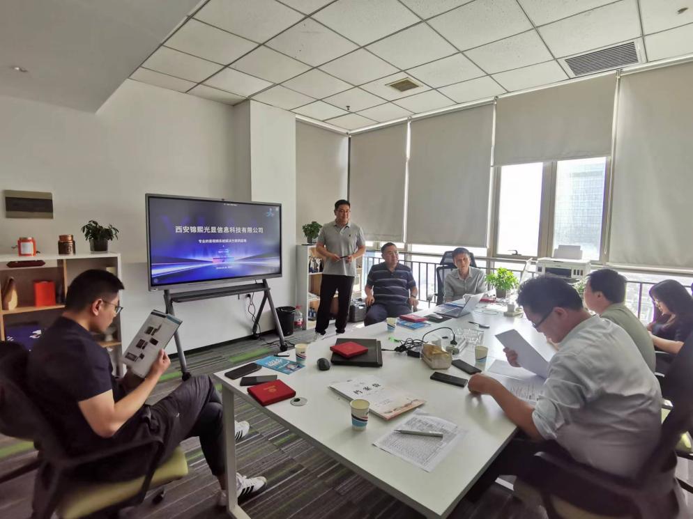 在西安锦熙光显信息科技有限公司,总经理徐卫国对学院师生的到来表示热烈欢迎,相关部门负责人介绍了公司技术方向、产品品类、人才需求等方面情况。秦翰林从历史沿革、机构平台、人才培养、学科科研等方面介绍了学校、学院基本情况。双方表示希望充分发挥专业、人才、资源等优势,通过项目合作、技术交流和人才培养等方式建立常态化互动交流机制,深化产学研合作。