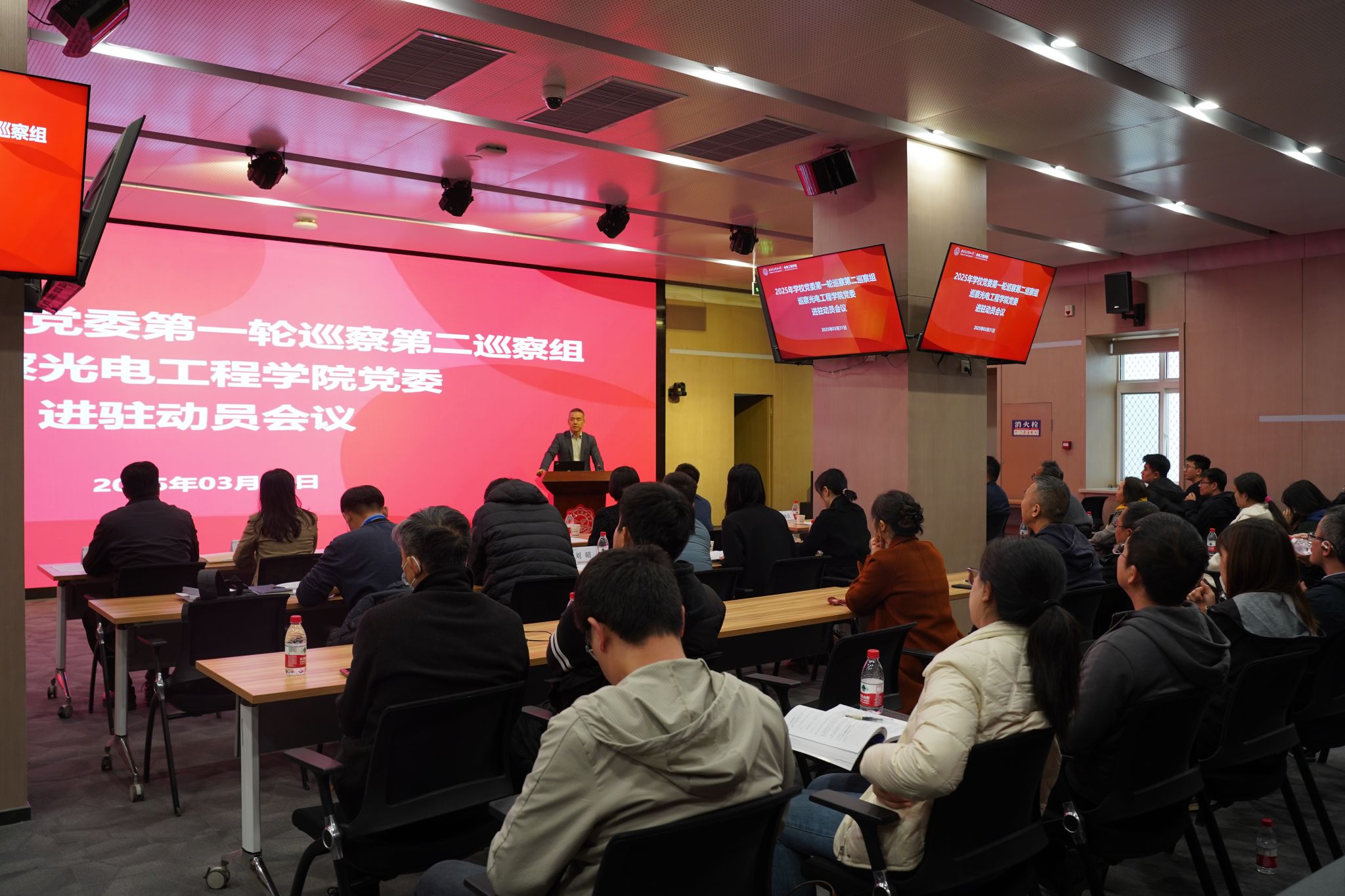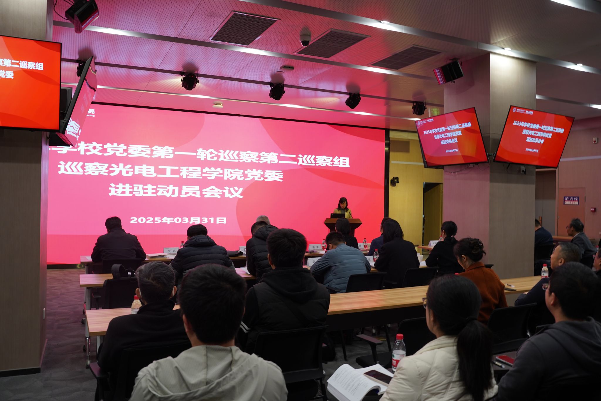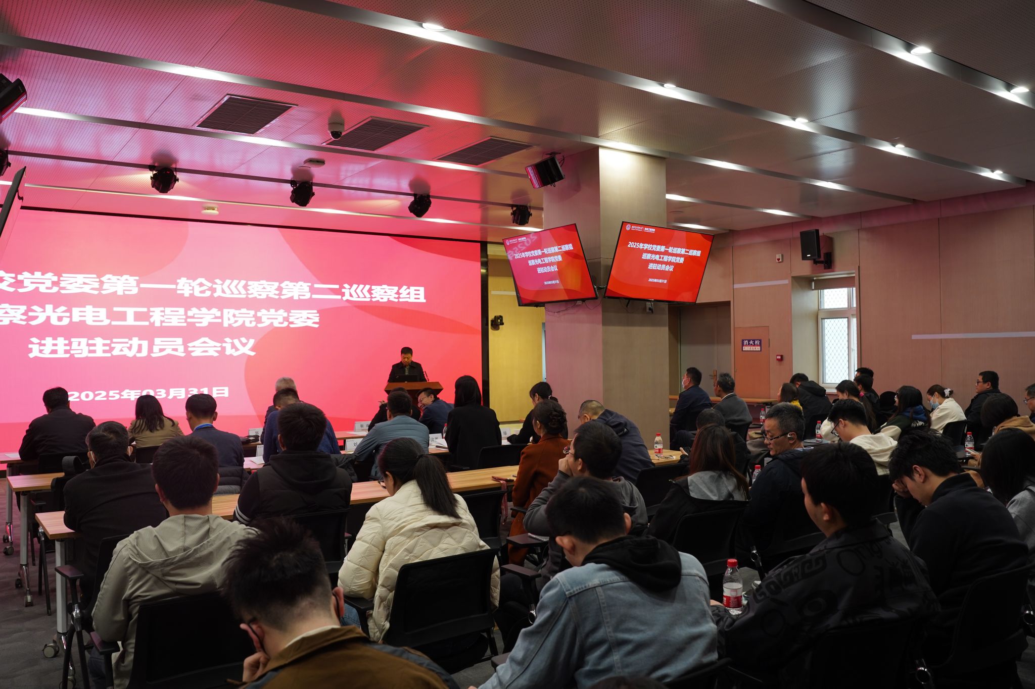 根据学校党委的统一部署,3月31日下午,2025年学校党委第一轮巡察第二巡察组巡察yl23455永利集团党委进驻动员会在北校区会议中心一层104召开。校党委副书记、纪委书记郭俊,校纪委副书记、监察处处长靳珠,巡察组全体人员、学院党政班子成员和师生代表等100余人参加。会议由学院院长徐淮良主持。