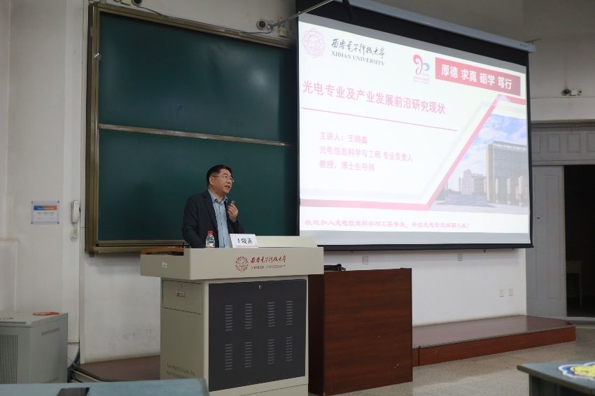 “光电信息科学与工程专业的学生需要具备扎实的数理基础和专业能力。”王晓蕊教授以光电信息科学与工程专业知识体系为轴,详细讲述了该学科的专业知识体系设计思路,解读人才培养方案修订及核心课程清单等,向同学们介绍主干课程与未来就业方向、升学深造的关联性。他还指出了光电信息技术在人工智能、智能制造、数字医疗等领域的广泛应用。