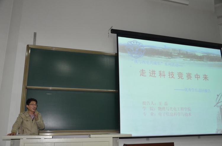 10级王磊同学(已保送至清华大学)涉及面甚广,首先他着重对大家在应对各类考试和科技竞赛方面提出了宝贵意见,详细介绍了几个我校重视的科技竞赛,其次他谈了学在西电的优势,从各个学科角度分析了专业对同学们未来职业的影响,最后他还介绍了我校关于研究生推免的相关情况,这让在座的13级新生受益匪浅。60分钟的报告会内容贴切充实、以身说教,层次分明、深入浅出,博得同学们热烈掌声,同学反响很大,收到了很好效果。
