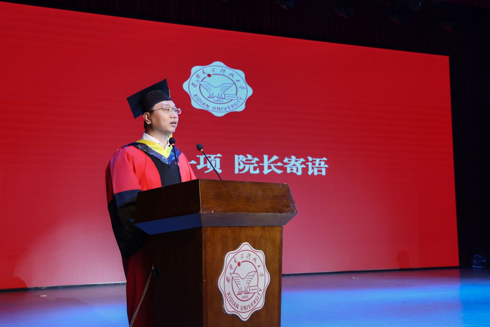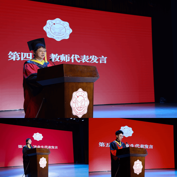 教师代表马琳以“底线、韧性、担当、热爱”四个关键词寄语毕业生,叮嘱他们“在纷扰中不失清澈,在挑战中磨砺意志”,无论来自何方、身在何处,西电永远是同学们的精神原乡。本科毕业生代表王玉楠在发言中感恩学校、学院和老师们的培养,表示将会用一生去诠释“厚德、求真、砺学、笃行”的校训,用行动和奋斗书写属于yl23455永利集团、属于西电人的华彩篇章。研究生毕业生代表袁帅表示“艰苦奋斗、自强不息、求真务实、爱国为民”的西电精神早已融入血脉,未来将继续扎根科研、投身教育,把青春写在祖国最需要的地方。