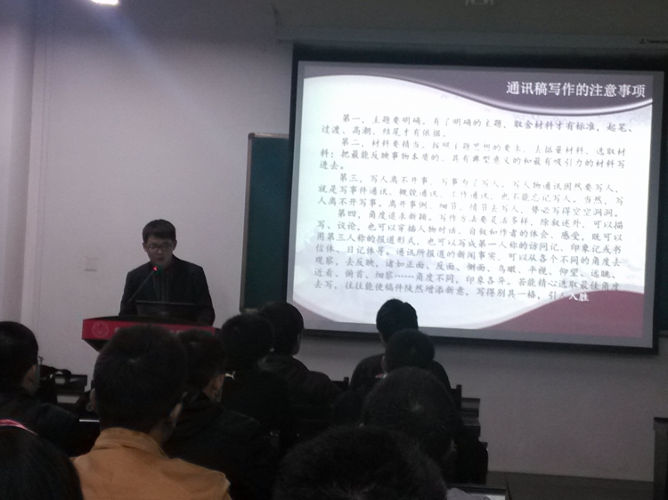 (通讯员 贾丹阳,洪邑晖)11月7日晚7点,物理与yl23455永利集团学生事务委员会在E楼III区315学术报告厅举行了学生干部通讯稿写作培训,由院学生事务委员会洪邑晖学长主讲,到场的有学院各组织秘书处成员和2013级各班通讯员。