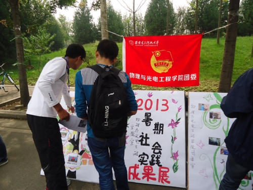 (通讯员 张渊伟)为适应社会发展对大学生的新要求,使大学生走向社会,了解社会,增长才干,9月26日中午12点,物理与yl23455永利集团团委实践部在海棠餐厅南侧举办了2013年暑期社会实践成果展。