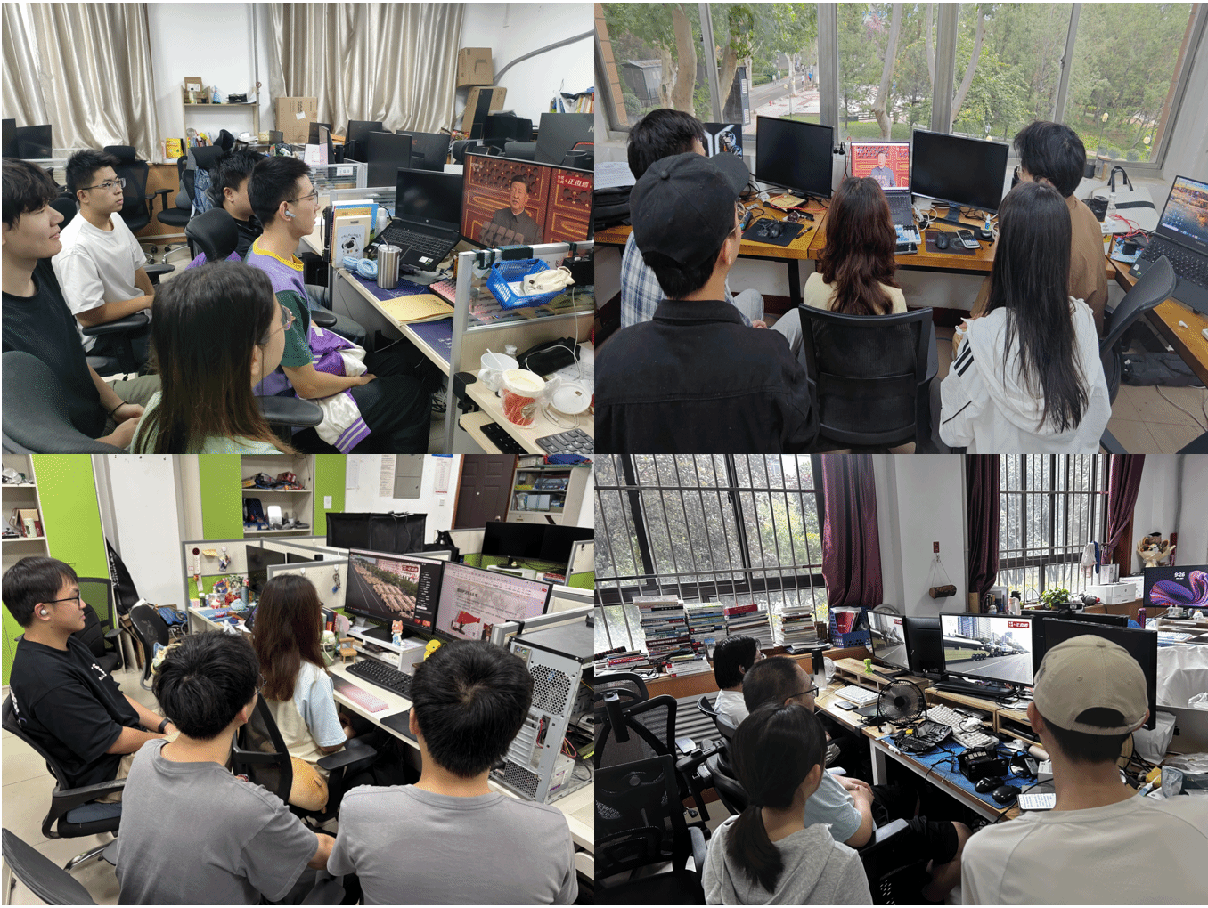 学院领导班子全体成员、办公室人员、师生代表等150余人分别在北校区西大楼Ⅲ区421、412会议室、大礼堂及南校区C楼415教室集中收看大会直播,各系(所、中心)教师、各年级学生通过电视、网络、手机客户端等方式自行收看,共同见证振奋人心的历史时刻。观看过程中,同志们神情庄重、心潮澎湃,认真聆听习近平总书记重要讲话、观看阅兵活动,民族自豪感和爱国热情油然而生,并迅速展开热议。