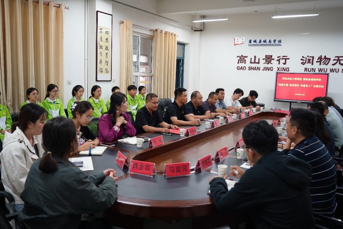上午,学院一行来到蒲城县城南学校开展帮扶,蒲城县委常委、副县长田雨(西电派出挂职干部)、教育局乡村振兴办主任曹新建、城南学校领导班子及西电研究生支教团成员参加座谈,会议由城南学校党支部副书记魏立平主持。学校党支部副书记、校长崔富强代表全校师生致欢迎辞,对yl23455永利集团多年来的帮扶表达诚挚感谢,表示学校将把这份关爱转化为立德树人、潜心育人的实际行动,努力培养更多具有科学素养和创新精神的新时代好少年。独国社表示学院师生为城南学校近年来在教育教学和校园建设等方面取得的成果感到由衷高兴,简要介绍了yl23455永利集团近期在学科建设、科学研究及人才培养等方面的重要进展,并表示希望今后双方进一步拓展合作领域、深化沟通机制,持续推动帮扶工作走向深入、取得实效。