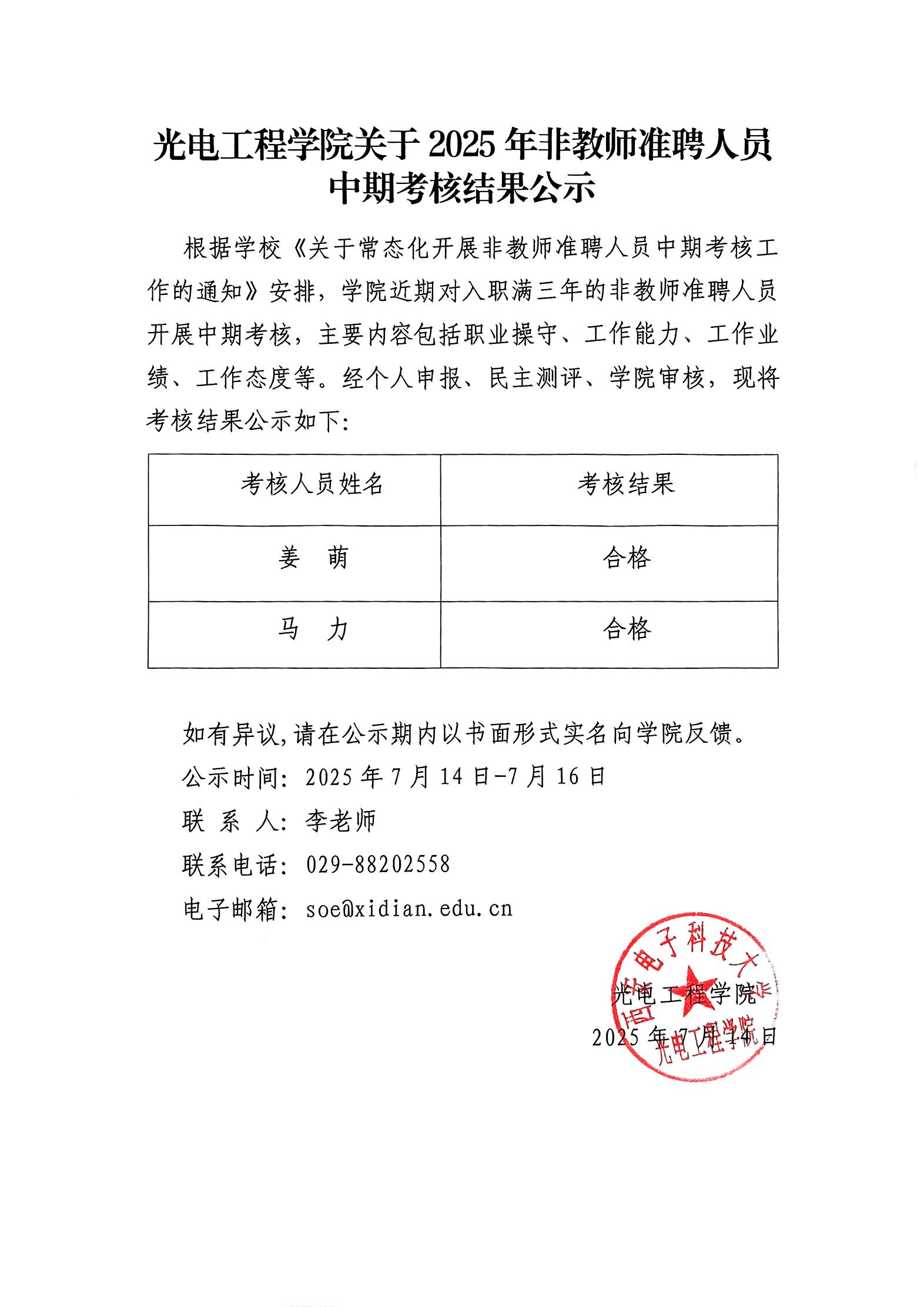 yl23455永利集团关于2025年非教师准聘人员中期考核结果公示