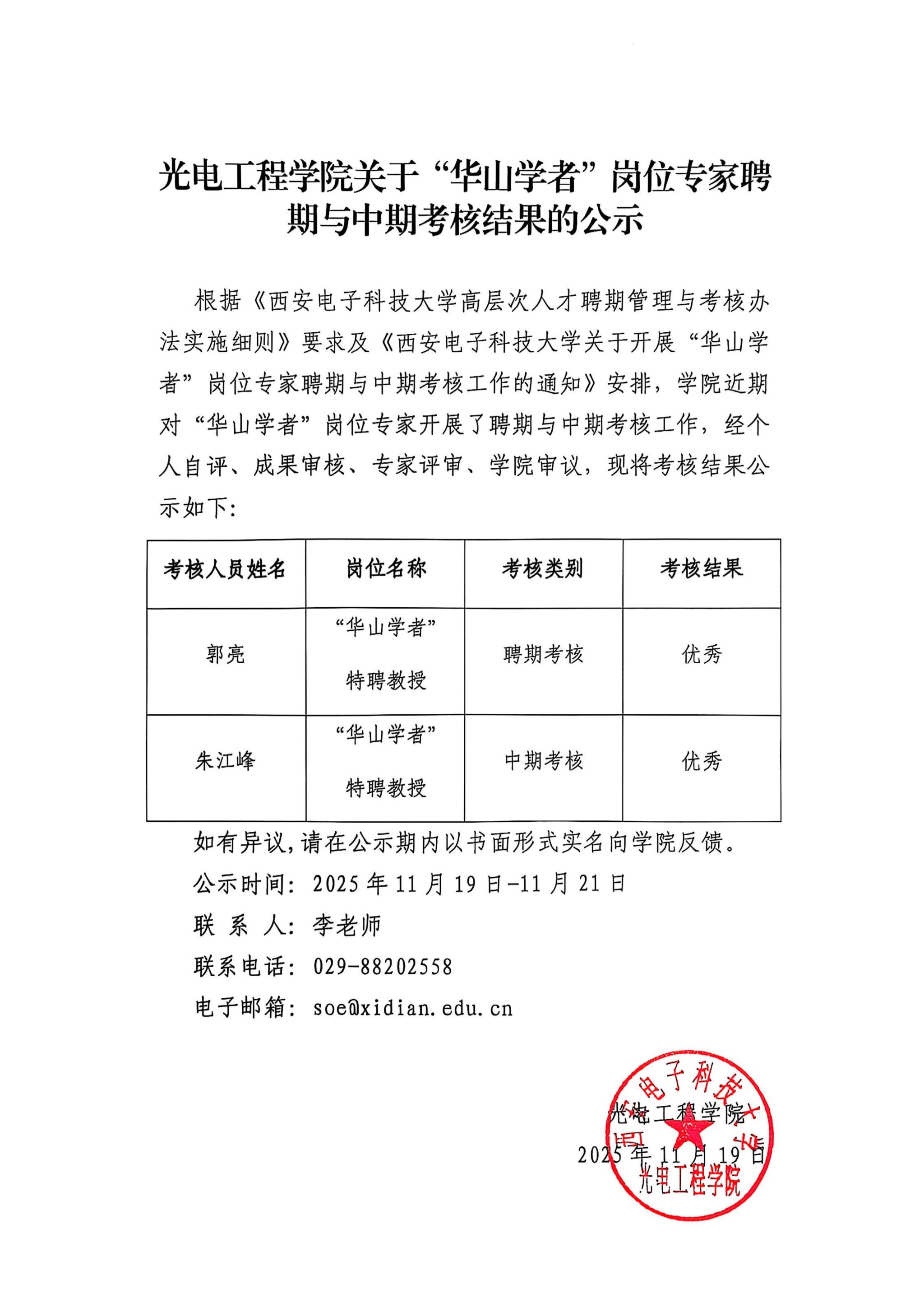 yl23455永利集团关于“华山学者”岗位专家聘期与中期考核结果的公示