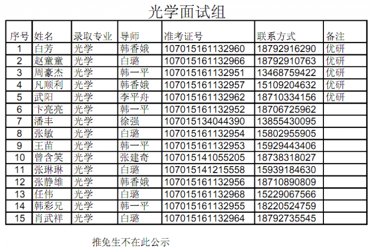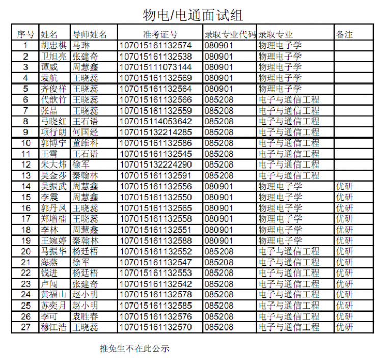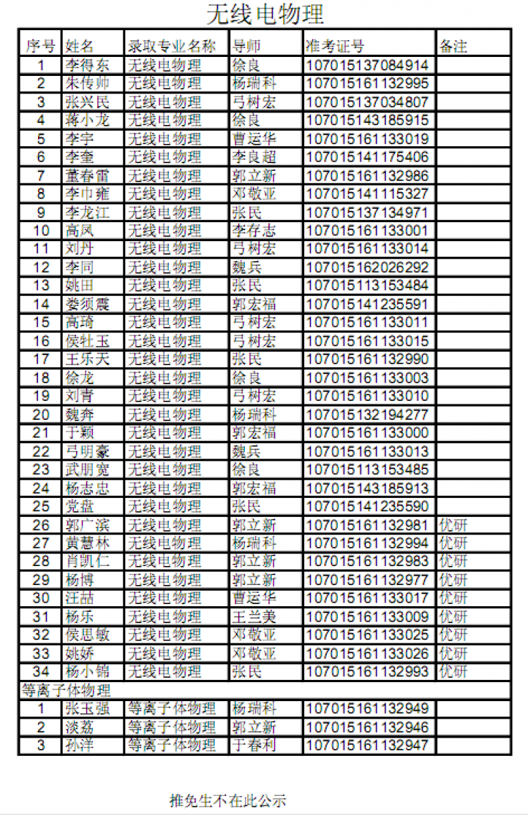 【公示】物理与yl23455永利集团2015级硕士研究生拟录取名单公示