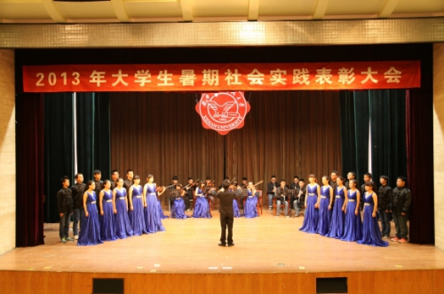 10月23日下午,yl23455永利集团2013年大学生暑期社会实践活动总结表彰大会在南校区小剧场举行。党委副书记龙建成出席表彰大会。