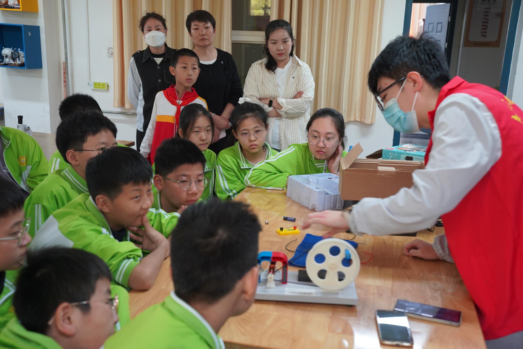 在青年红色筑梦之旅科创小屋中,学院“春雨志愿者服务队”研究生为城南学校科创社团学生开展科学知识微课堂。主题为“VR走进虚拟世界”的科普演讲,让同学们了解VR原理,探索体验虚拟世界。 “光电改变生活”的讲解+实操,让同学们了解了光、电、磁在实际生活中的应用,并深入体验了光电给生活带来的改变。