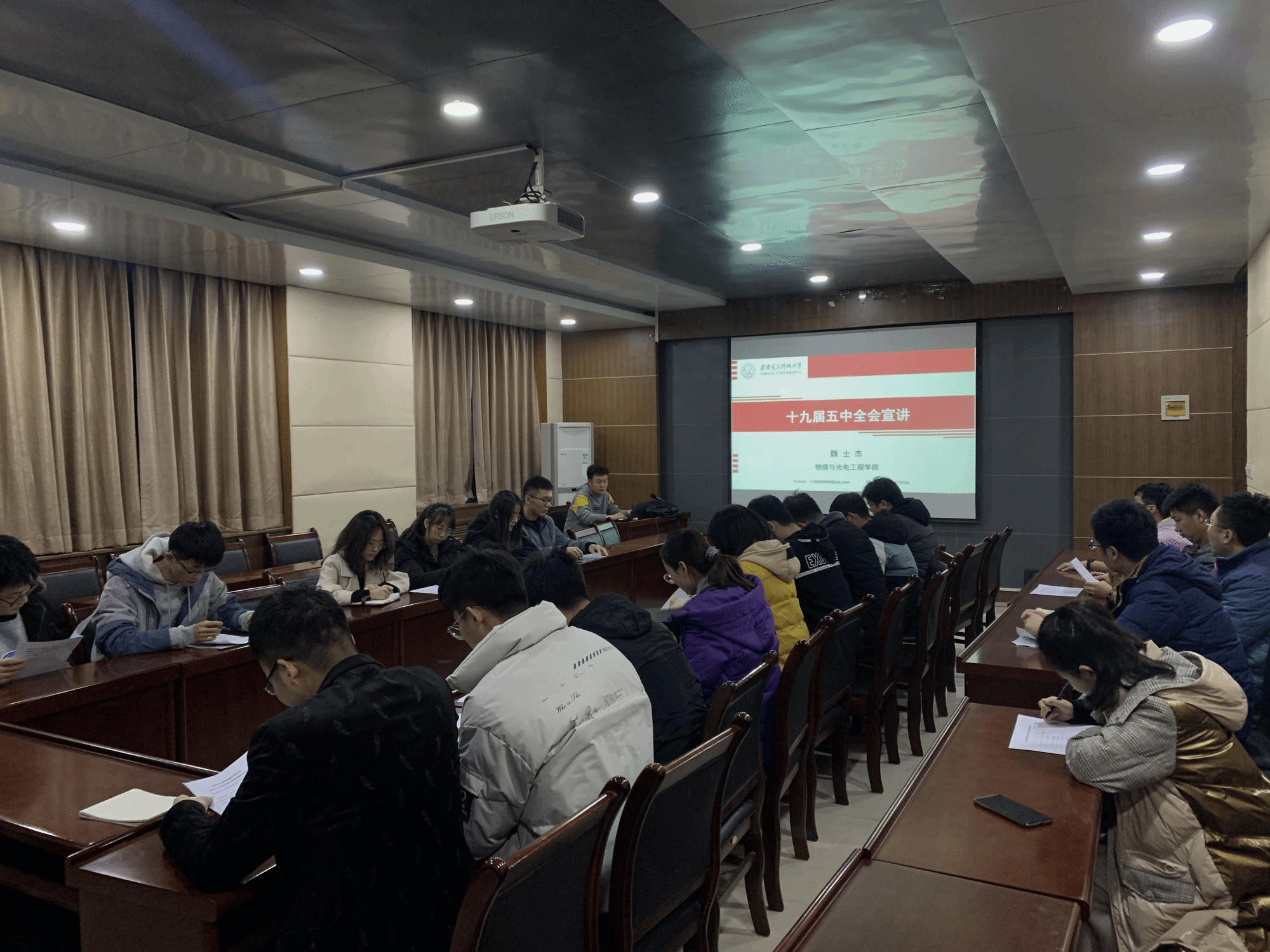 为进一步学习贯彻党的十九届五中全会精神,落实党委研究生工作部、学院党委相关学习要求,12月17日晚,物理与yl23455永利集团于西大楼三区412会议室组织研究生党支部全体支委开展专题学习研讨,学院博士20级党支部书记魏士杰领学十九届五中全会会议公报全文,并就相关内容分享体会心得。会议由物光院研究生辅导员李维嘉主持。