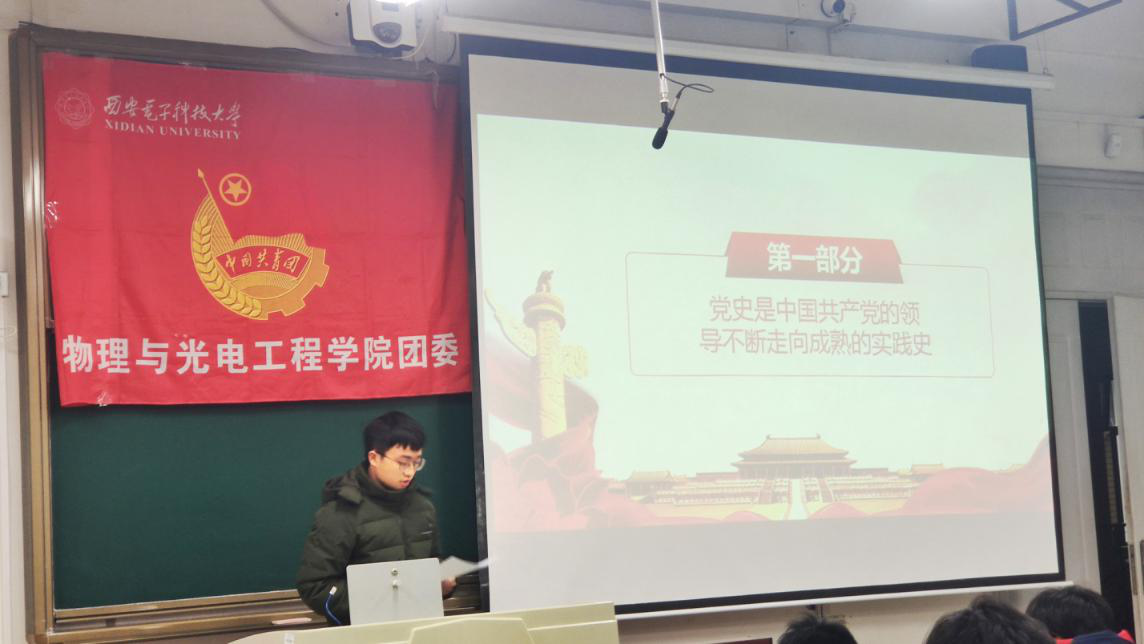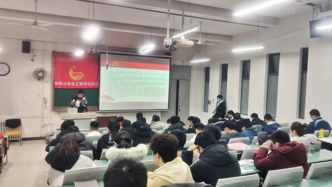 (通讯员:董亚霖 侯赛金 席奥博)12月3日晚七点,yl23455永利集团物理与yl23455永利集团第十五期中级党校第三次党课在南校区教学楼A楼211教室进行。本次党课由各学员分小组围绕“加强‘四史’学习,做新时代青年”主题,通过答辩形式分享学习成果、开展讨论交流,本次活动由物光院团委组织部干事董亚霖主持。