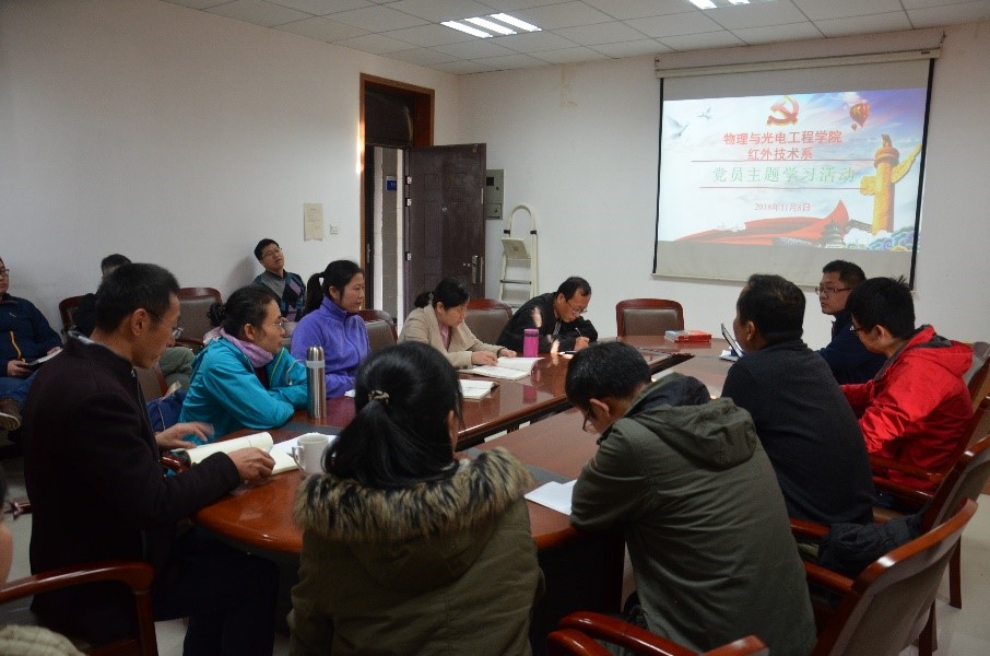 (通讯员:延翔、袁影)11月8日下午,物理与yl23455永利集团红外技术系党支部在西大楼III-421会议室开展基层党支部党员主题学习活动,就全国教育大会精神、学院教育教学和岗位聘任等集中开展学习教育。会议由党支部书记秦翰林主持,学院执行院长邵晓鹏、副院长周慧鑫和支部全体成员参加了会议。