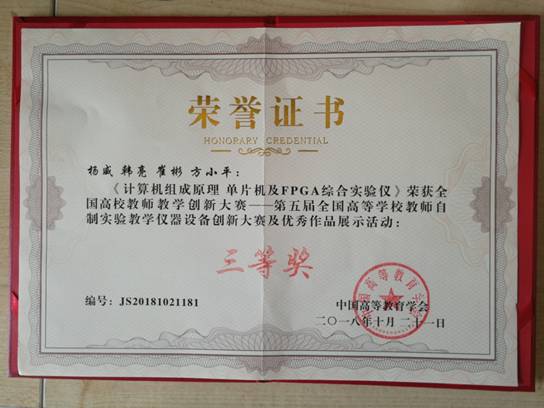 (通讯员:杨威)日前,第五届全国高等学校教师自制实验教学仪器设备创新大赛在成都落幕。物理与yl23455永利集团杨威、韩亮、崔彬、方小平等老师研发的《计算机组成原理、单片机及FPGA综合试验仪》获大赛三等奖。《计算机组成原理、单片机及FPGA综合试验仪》具有“一机多用”、 “一体机化”、“可调性强”和“可视性强”等特点,在两年的教学实践中,有一千多名本科生利用该实验仪完成了微机原理和系统设计等实验,并取得了非常...